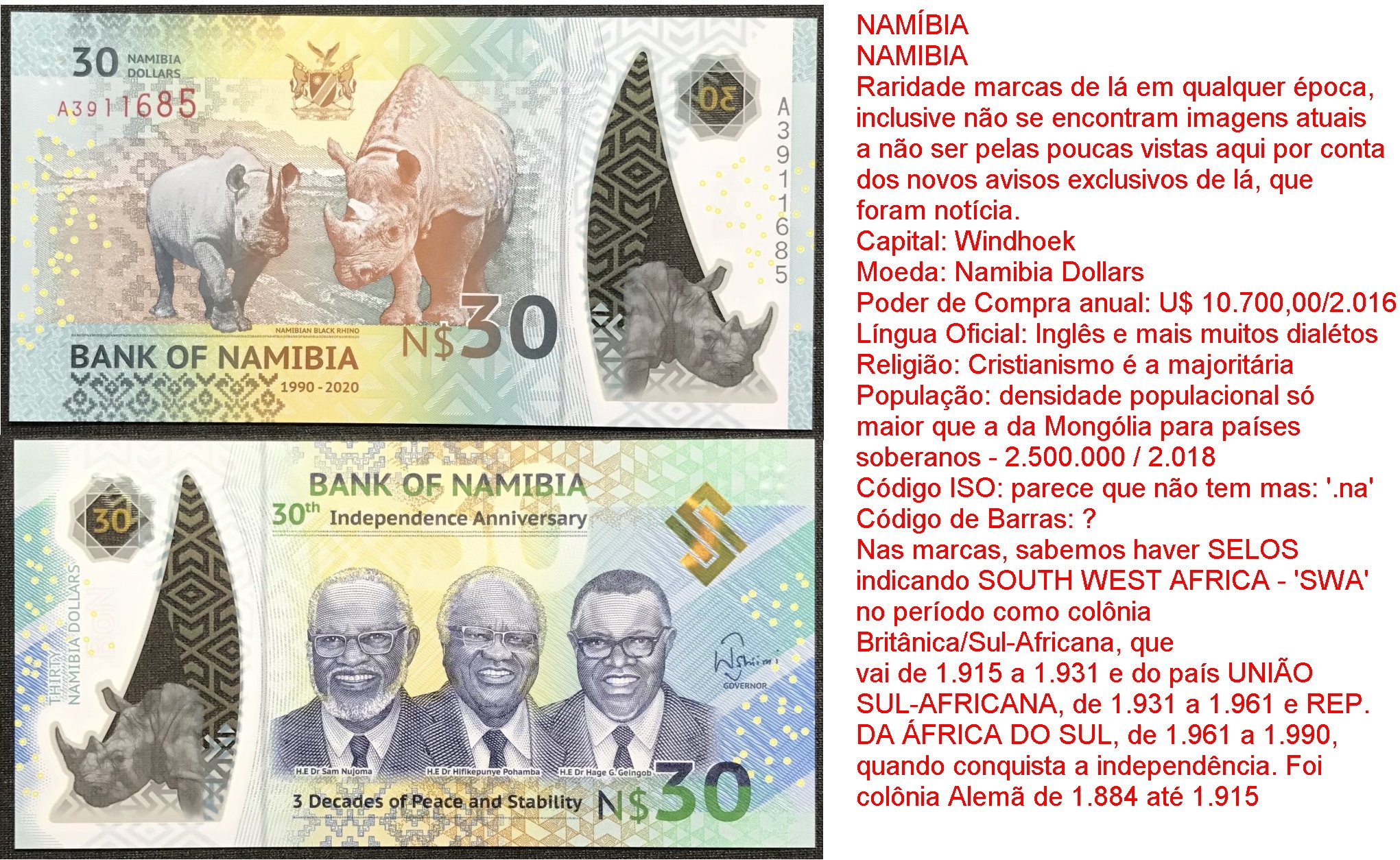 0 NAMIBIA - 01 - colônia alemã até 1.915, África do Sul até 1.990 NAMIBIA